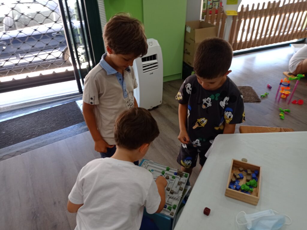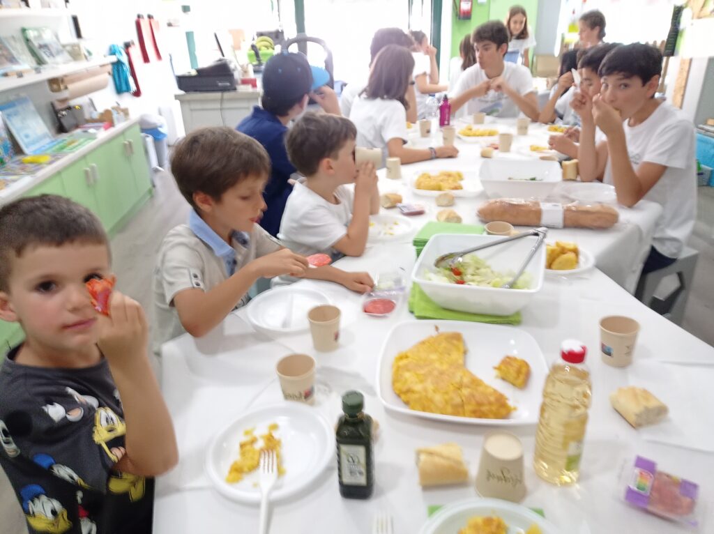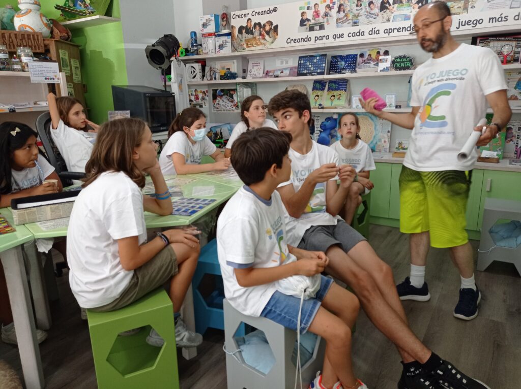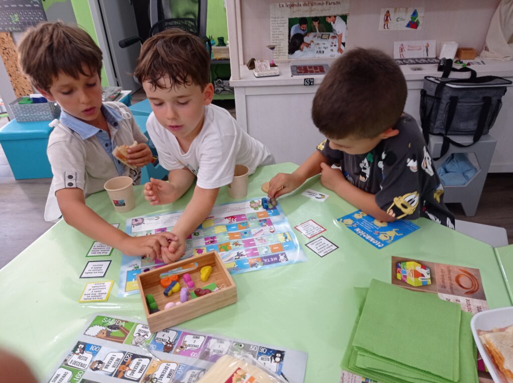 Al mediodía regresamos al local de Crecer Creando para comer y disfrutar de algunos de los juegos de mesa matemáticos de nuestra marca: Clonación, El laberinto del Minotauro y Carrera de cálculo.