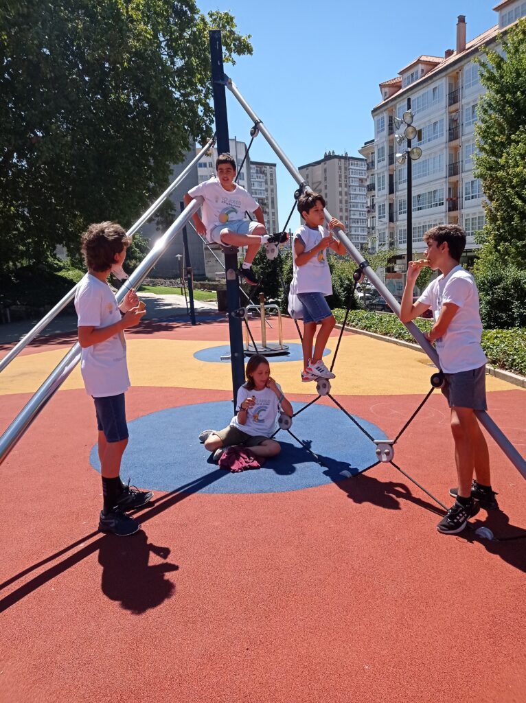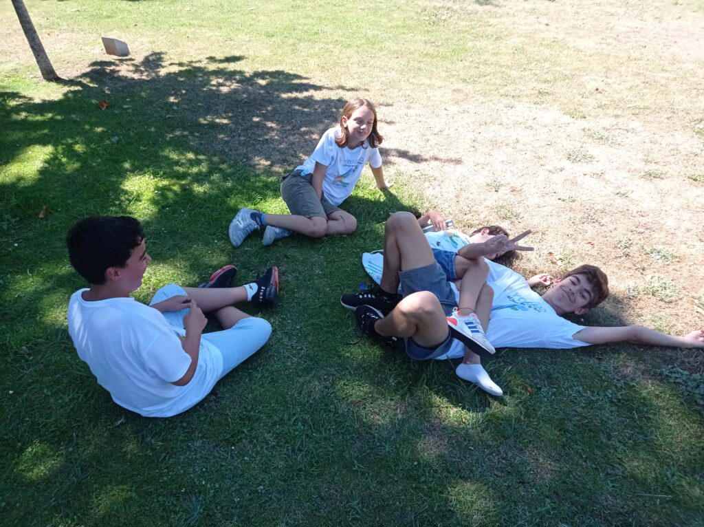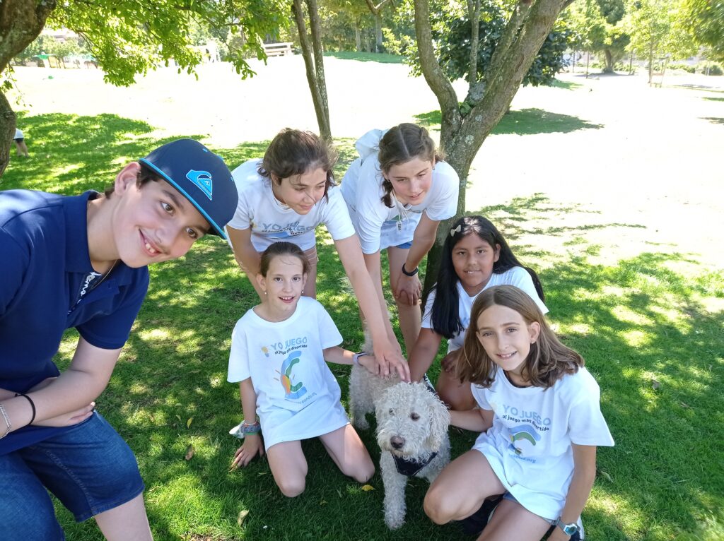 Después de recoger y reciclar entre todos, compartimos 30 minutos al aire libre con Nemo, el perro de Crecer Creando, y Max y Kira, su manada, todos perros rescatados. Nemo estaba muy feliz por volver a ver a los niños y niñas. Aprovechamos para hablar sobre el respeto a todos los seres vivos.