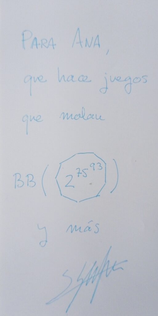 Al día siguiente, sábado, tuve la oportunidad de asistir a su conferencia en la USC, acompañada de otro grupo de alumnos. La charla de Eduardo no solo fue increíblemente inspiradora y educativa, sino también sumamente divertida. Fue una grata sorpresa para todos nosotros ver que Eduardo se tomó el tiempo de acercarse y conocer personalmente a estos niños antes de empezar su conferencia. Y, lo que es más, después de finalizar, se quedó charlando con ellos, mostrando un genuino interés y aprecio por sus ideas y preguntas. Esta actitud hacia los estudiantes es un claro reflejo de su dedicación y pasión por la enseñanza y la divulgación de las matemáticas.